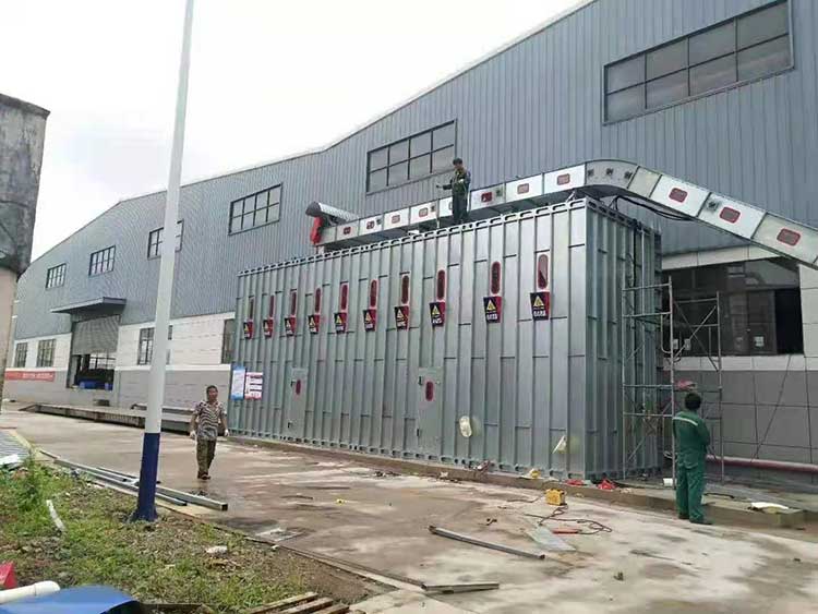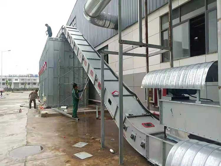 5、火情檢測盒滅火系統(tǒng):設(shè)備出風(fēng)口設(shè)置火情檢測探頭用于火情檢測。滅火噴淋裝置安裝于主風(fēng)筒內(nèi),用于滅火,以有效保護(hù)系統(tǒng)的運(yùn)行安全。探測器探測到火情時(shí),立即報(bào)警,關(guān)閉主機(jī),同時(shí)開啟消防泵進(jìn)行噴淋滅火。