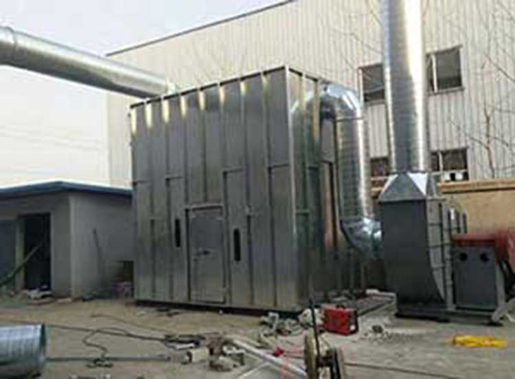 布袋除塵器主要由灰斗、過濾室、凈氣室、支架、提升閥、噴吹清灰裝置等部分組成。工作時,含塵氣體由風(fēng)道進(jìn)入灰斗。大顆粒的粉塵直接落入灰斗底部,較小的粉塵隨氣流轉(zhuǎn)折向上進(jìn)入過濾室,并被阻留在濾袋外表面,凈化了的煙氣進(jìn)入袋內(nèi),并經(jīng)袋口和凈氣室進(jìn)入出風(fēng)倒,由排風(fēng)口排出。隨著過濾的不斷進(jìn)行,濾袋外表面的粉塵不斷增加,設(shè)備阻力隨之上升。當(dāng)設(shè)備阻力上升到一定值時,應(yīng)進(jìn)行清灰操作,清除濾袋表面的積灰。