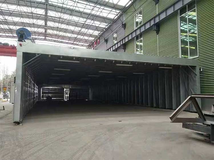 1、移動(dòng)伸縮噴漆房,因?yàn)殇摴艿墓ぜ容^長(zhǎng),為了方便工件的運(yùn)轉(zhuǎn),提高生產(chǎn)效率,以及有效的收集漆霧顆粒,故需要一臺(tái)長(zhǎng)24米,寬6米,高4米的移動(dòng)伸縮噴漆房。移動(dòng)噴漆房框架使用鍍鋅方管制作,移動(dòng)伸縮房蓬布使用三防布制作,內(nèi)部設(shè)有防爆炸照明裝置,佑泰環(huán)保制作的移動(dòng)伸縮噴漆房,使用機(jī)器人焊接,安裝后外觀美麗大方,結(jié)實(shí)耐用。