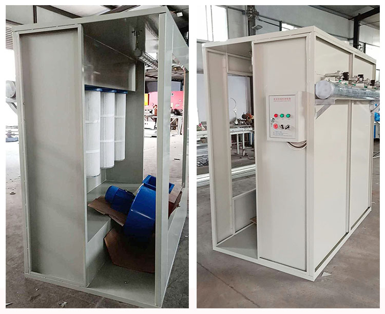 塑粉回收機(jī)由箱體、粉末過濾系統(tǒng)、抽風(fēng)系統(tǒng)、控制系統(tǒng)等四大部分組成,噴涂時(shí)產(chǎn)生粉塵經(jīng)過高精度濾筒過濾,凈化氣流由抽風(fēng)機(jī)排出室外,整個(gè)程序由電氣自動(dòng)控制。