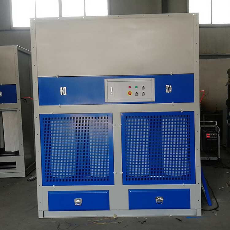 2.1、煙塵或者粉塵通過風機產生的負壓經側排風口和下排風口進入凈化器,氣流進入導流通道,大顆粒粉塵與導流板碰撞后,大顆粒粉塵在重力的作用下落入集灰抽屜,含細小顆粒的粉塵進入過濾室,含塵氣體由濾袋外表面穿過濾芯,粉塵則被濾芯阻攔在其表面,當被阻攔的粉塵在濾芯表面不斷沉積時,通過脈沖噴吹對濾筒清灰使得沉積在濾芯上的粉塵顆粒在振動的作用下脫離濾芯表面落入集灰抽屜中,使得整個濾芯表面都得到清掃,凈化后的空氣由風道、經風機排出。