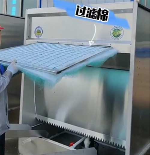 2、使用干式除塵時,砂輪機距離局部扇風機遠近不同,距離遠的砂輪機除塵效果不理想,且風道容易堵塞.局部扇風機噪聲大,電耗多。新款水式除塵柜帶有可調節支架,打磨產生的粉塵一部分隨支架上水槽流入水池,另一部分直接通過水簾吸附凈化。