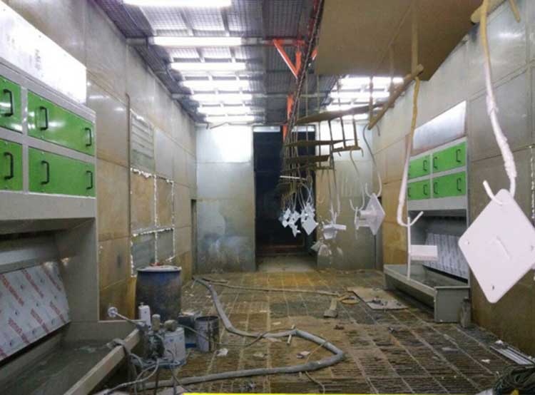 ? 噴漆室:噴漆時(shí)具備通風(fēng)、照明、空氣凈化的功能。噴漆室采用上部送風(fēng),側(cè)部排風(fēng)的漆霧處理結(jié)構(gòu)。漆霧處理設(shè)備為干式噴漆柜和噴漆水簾柜兩種類型。