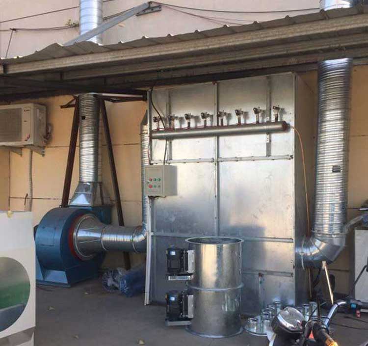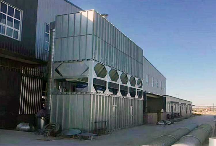 在車間各揚(yáng)塵點(diǎn)采用吸罩通過吸塵管道進(jìn)入布袋除塵器,后通過布袋再次收集,經(jīng)過過濾后的凈化氣體通過風(fēng)機(jī)排出。