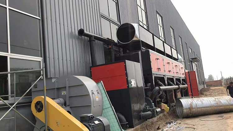 活性炭吸附箱體在有機廢氣吸附達到飽和之后,需要將活性炭中的廢氣脫附下來,然后進入催化燃燒室燃燒。在將廢氣進行催化燃燒凈化的過程中,廢氣經(jīng)管道由風機送入熱交換器,將廢氣加熱到催化燃燒所需要的起始溫度。經(jīng)過預(yù)熱的廢氣,通過催化劑層使之燃燒。由于催化劑的作用,催化燃燒中廢氣燃燒的起始溫度約為250~300攝氏度,遠遠低于直接燃燒法的燃燒溫度650~800攝氏度,脫附后的高溫氣體達標再次進入熱交換器,經(jīng)換熱冷卻,以較低的溫度經(jīng)風機排入大氣中。