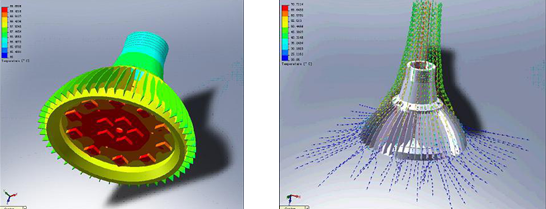 燈罩發熱分布示意圖 燈具熱流路徑示意圖