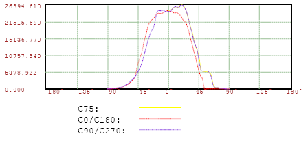 在C-平面坐標(biāo)系統(tǒng)中,極軸是垂直的,如圖所示。在垂直半平面測量的角度是γ角度,以及到此半平面的水平角度是C角度。燈具發(fā)光口面通常瞄準(zhǔn)坐標(biāo)系中的(C0,γ0)點。γ角度范圍從0°(最低點)到180°(最高點)。C平面在角度范圍從0°到360°,如圖所示。在光度學(xué)中C0參考平面位置,通常是平行于燈具的輔助軸線。C-平面坐標(biāo)系統(tǒng)通常用于室內(nèi)照明和道路照明的分布光度計測試中并得到廣泛的承認(rèn)。