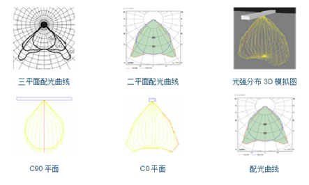 配光曲線按對稱性質通常分為:軸向對稱、對稱和非對稱。