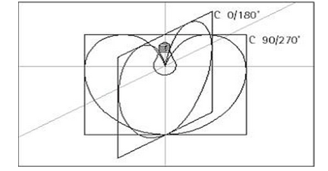 對稱:當燈具C0°和C180°剖面與C90°和C270°剖面配光對稱時,此配光曲線稱為對稱配光。