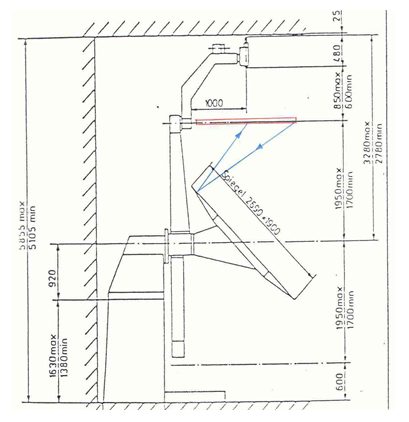 注:該圖表明,燈具左端發(fā)出的光通過鏡子最上端反射后,變成水平方向的光,送到遠端探測器;同理,燈具最右端發(fā)出的光通過鏡子最下端反射后,變成水平方向的光,送到遠端探測器。