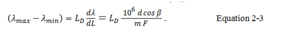 這給在納米/毫米條款線性色散。 從線性分散體中,最大光譜范圍(λ最大- λ 分鐘)可基于所述檢測(cè)器的長(zhǎng)度(L D),其可以通過檢測(cè)器(n)的由像素寬度的總像素?cái)?shù)的相乘進(jìn)行計(jì)算來計(jì)算(W p)的產(chǎn)生中的表達(dá):