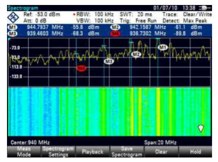 R&S ZVH-K14瀑布圖分析功能也是一個軟件選件,選裝該選件后ZVH4和ZVH8天饋線分析儀即具備瀑布圖分析功能。R&S ZVH-K14具有以下特性: 顯示頻譜歷史、分屏顯示和全屏顯示、回放功能、兩條時間線和6個標記點、6個不同的顏色可選擇,還能同時顯示頻譜和瀑布圖。