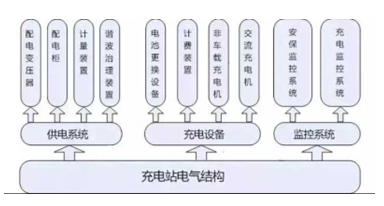 電動汽車充電站主要由三部分構成:供電系統,充電設備和監控系統。