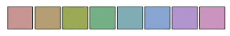 其中8個顏色樣品分別為:暗灰色、暗黃色、深黃綠色、黃綠色、淡藍綠色、淡藍色、淡紫色、紅紫色。如下圖所示:
