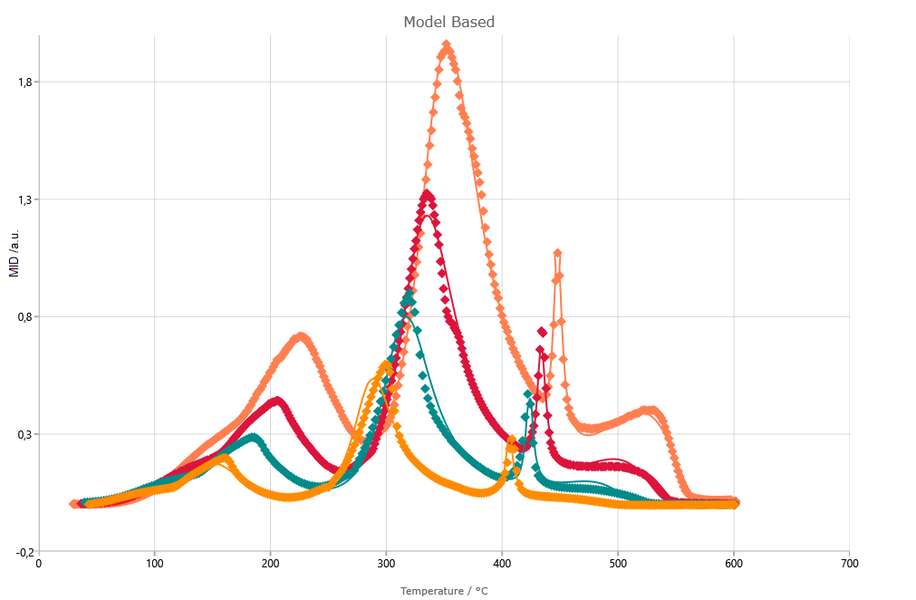 模型動力學:創建包含一至多個反應步驟的反應模型,每一反應步驟具有獨立的反應類型,擁有各自的活化能、指前因子等動力學參數。由此可見可對反應過程及其內在機制進行更準確的描述。