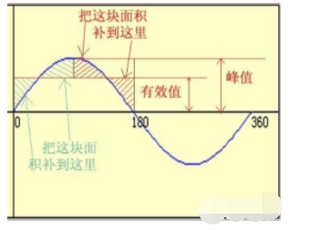 交流電壓的有效值是轉換為等效方波的正弦波的幅度。