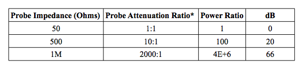 使用阻抗大于50歐姆的探頭作為分壓器,適用于將信號傳輸到頻譜分析儀,這降低了輸入電壓,并有效地充當了衰減器,它還具有減輕由50歐姆頻譜分析儀輸入直接連接到電路所引起的電路負載的優勢。