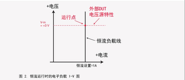 電子負載是一種測試儀器,主要是從電源吸收電流和吸收功率。如果使用電源為設備供電,則使用電子負載通過模擬被測設備(DUT)來測試電源。電源和電子負載是互補的測試設備。電源在特定的源條件下測試電子電路。電子負載在特定負載約束下測試能源或能量轉換塊。電子負載是一種可編程儀器,可以為用戶提供各種控制模式,比如恒壓(CV)、恒流(CC)、恒功率(CP)或恒阻(CR)。圖1顯示了電子負載的電壓和電流圖。