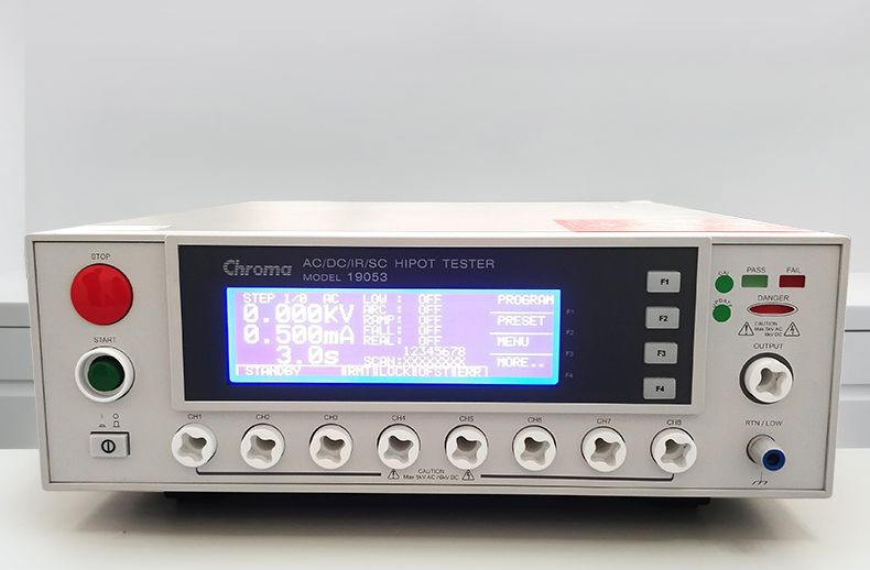 4、被測試產品的一端連接與高壓輸出孔,如選擇的電壓為AC,則應當選用AC高壓輸出孔,如選擇的電壓為DC,則應當選用DC高壓輸出孔,另一端連接于被測端(COM)。
