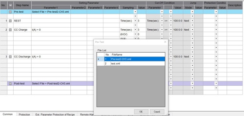 Chroma能源回收式充放電機系列17020/17020E/17040/17040E,可針對不同電壓的電池包,搭配專屬的BatteryPro軟件,進行解鎖行為控制。舉例來說,BatteryPro軟件內Pretest/ Posttest功能,將測試前的準備與解鎖作業、測試后的結束步驟設置成測試工步,使用者可自行編輯Pretest/ Posttest流程執行指定動作,使測試流程高度符合使用者需求亦可全程自動化。在一般CAN通信上,BatteryPro軟件可依據不同測試流程,插入內置的CAN write function工步,并針對特定CAN ID位置,控制發送與接收CAN信號,進行各種指令,如繼電器開關控制,在操作上更加彈性且貼近實際使用情境。