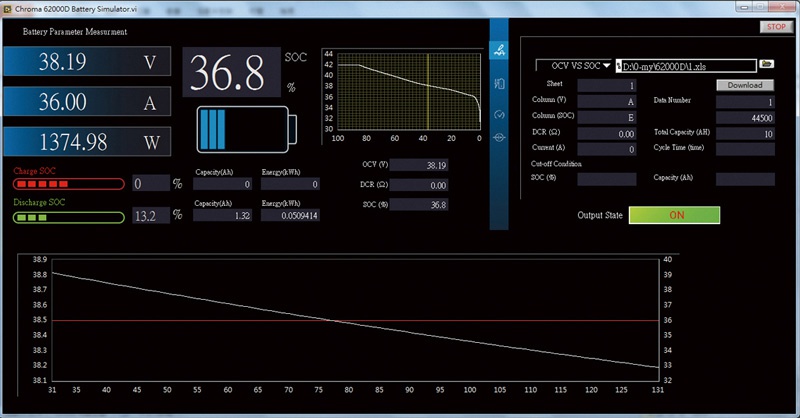 軟件BatteryPro整合第三方硬件,包括BMS通信裝置,數據記錄器和溫箱等第三方軟硬體,將其數據用于測試程序控制,檢出電池芯在調頻過程的各串電池芯的電壓變化,找出儲能柜質量缺陷;透過電池模擬器軟件Battery Simulator Soft-Panel,能程控不同電池電量狀態(SOC狀況),測試產品充放電狀態,做儲能逆變器與電池搭配的測試評價。