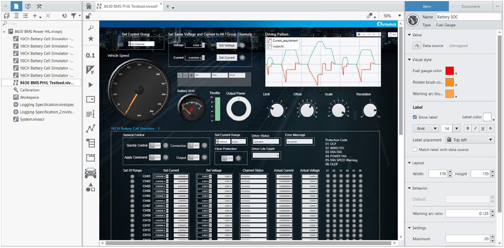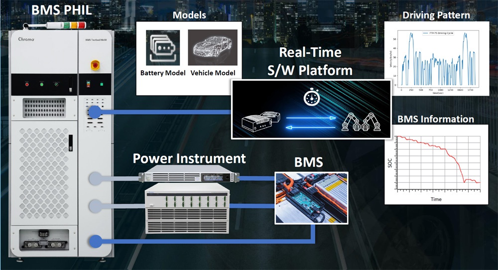 電池管理系統(BMS)設計著重于電池電性監測、電芯平衡控制,以及State of Charge(SOC)、State of Health(SOH)指標性能估算和異常警報發送,讓整車控制器(VCU)可充分掌握電池包狀態,確保車輛行駛安全,由于BMS與電池包密不可分,因此測試規劃必須一并考察從電芯到成車應用的各種工況。HIL臺架協助使用者在開發階段就進行接近成品的硬件模擬測試,不需等到電池包整合完成后才進行,有利早期發現問題、降低開發風險與修正設計的成本。