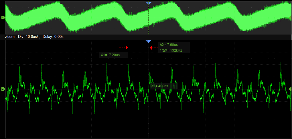 ● FFT,除了CH1-CH8上的實際波形之外,還可以對運算波形執行信號頻域測試與分析,峰值檢測功能會自動檢測雜散頻率,便于分析被測電路中的干擾噪聲。