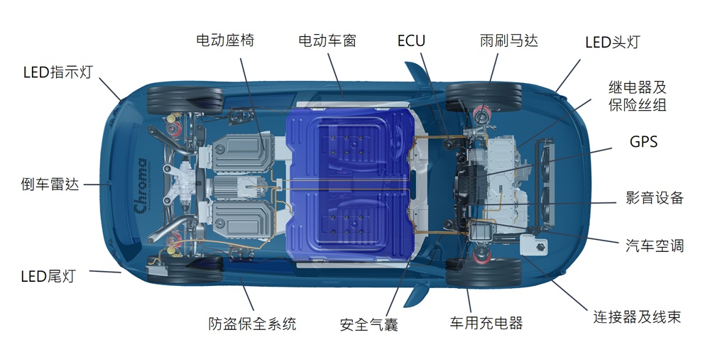 車用電子技術(shù)發(fā)展迅速,先進(jìn)的感測技術(shù)、高效的電子控制單元、優(yōu)化的通信系統(tǒng)和豐富的車內(nèi)娛樂系統(tǒng)等提供了更高水平的安全、舒適和娛樂性。為確保車輛零部件和電力系統(tǒng)在各種極端環(huán)境條件下保持可靠性和耐久性,ISO 16750-2標(biāo)準(zhǔn)因應(yīng)而生,該標(biāo)準(zhǔn)是車輛電氣和電子部件的環(huán)境測試標(biāo)準(zhǔn)之一,旨在模擬實(shí)際使用中可能遇到的各種環(huán)境情境,以確保車輛中的電子部件如下圖(LED頭燈、ECU、雨刷馬達(dá)、電動車窗、車用影音顯示器、GPS、充電器等)能夠在極端條件下正常運(yùn)作,從而提高車輛的安全性和可靠性。