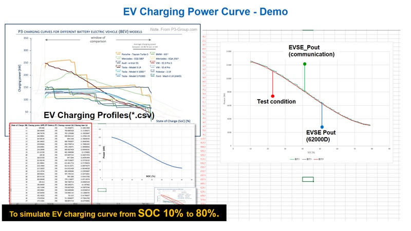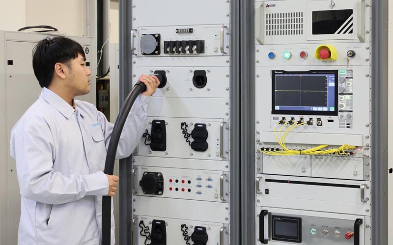 致茂電子充電樁測試解決方案,以Chroma 8000自動測試系統為基礎,搭配不同的通訊仿真器,支持多國法規與充電標準,已陸續加入中國GB、日本CHAdeMO、歐美CCS等主流充電標準,完整涵蓋標準功能測項與通訊協議,驗證車與樁之間的兼容性。Chroma 80713 PLC通訊仿真器內建NACS的充電協議,可滿足充電兼容性測試的標準項目,再搭配Chroma雙向直流電源(17040 / 17040E / 62180D),能支持功率級充電功能性測試與V2G放電的情境測試。其測試項目可依照不同充電樁(EVSE)產品提供客制化服務,例如:多槍測試情境、各種EV充電曲線仿真以及功率智能分配等。