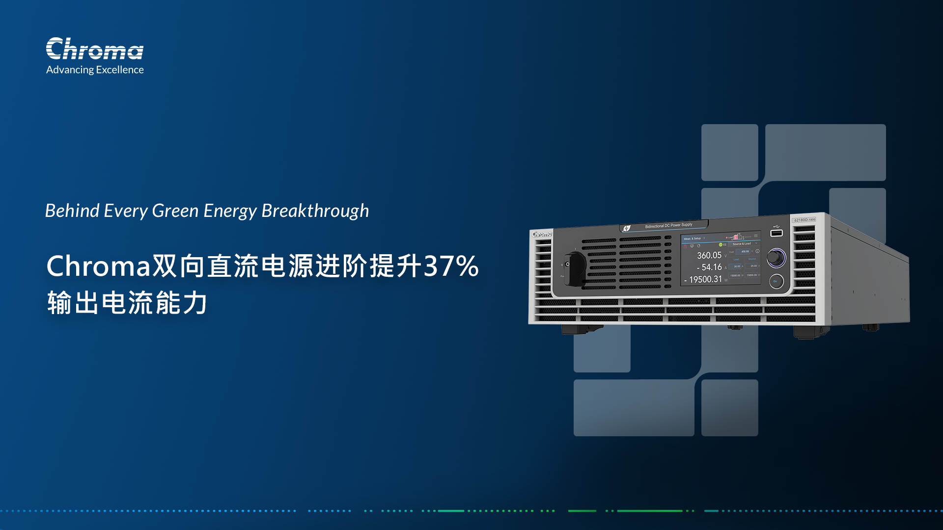 為滿足以上快速發(fā)展的電動(dòng)車和新能源市場(chǎng)的需求,隨著此次產(chǎn)品性能提升,Chroma 62000D系列雙向直流電源供應(yīng)器將繼續(xù)為使用者提供高效可靠的解決方案,并幫助使用者在設(shè)計(jì)和測(cè)試過程中,讓電源設(shè)備能更有效的利用,對(duì)應(yīng)于更廣泛多元的待測(cè)物產(chǎn)品規(guī)格使用。