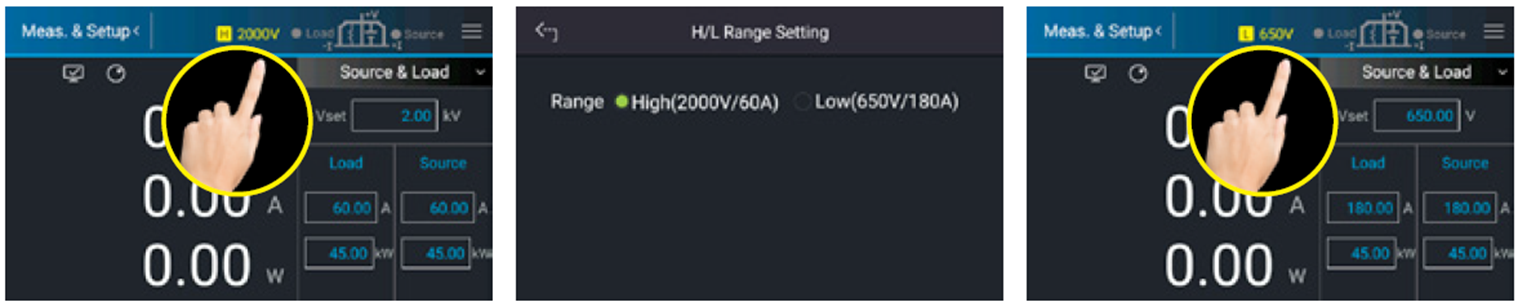 Chroma 62000D-HL型號所具備的雙輸出范圍,使用者只需于前面板觸控螢幕上一鍵切換,或通過遠端控制以一條指令即可完成切換。在產線自動測試系統(ATE)中,僅需使用一臺62000D-HL,以切換指令選擇High/Low檔位,即可滿足兩組輸出范圍操作。切換完成后可接續測試指令,使用者不需額外的人工手動于設備輸出端拆裝橋接治具,Chroma讓使用者可以連貫的執行測試程序,同時避免人工手動安裝的危險性。