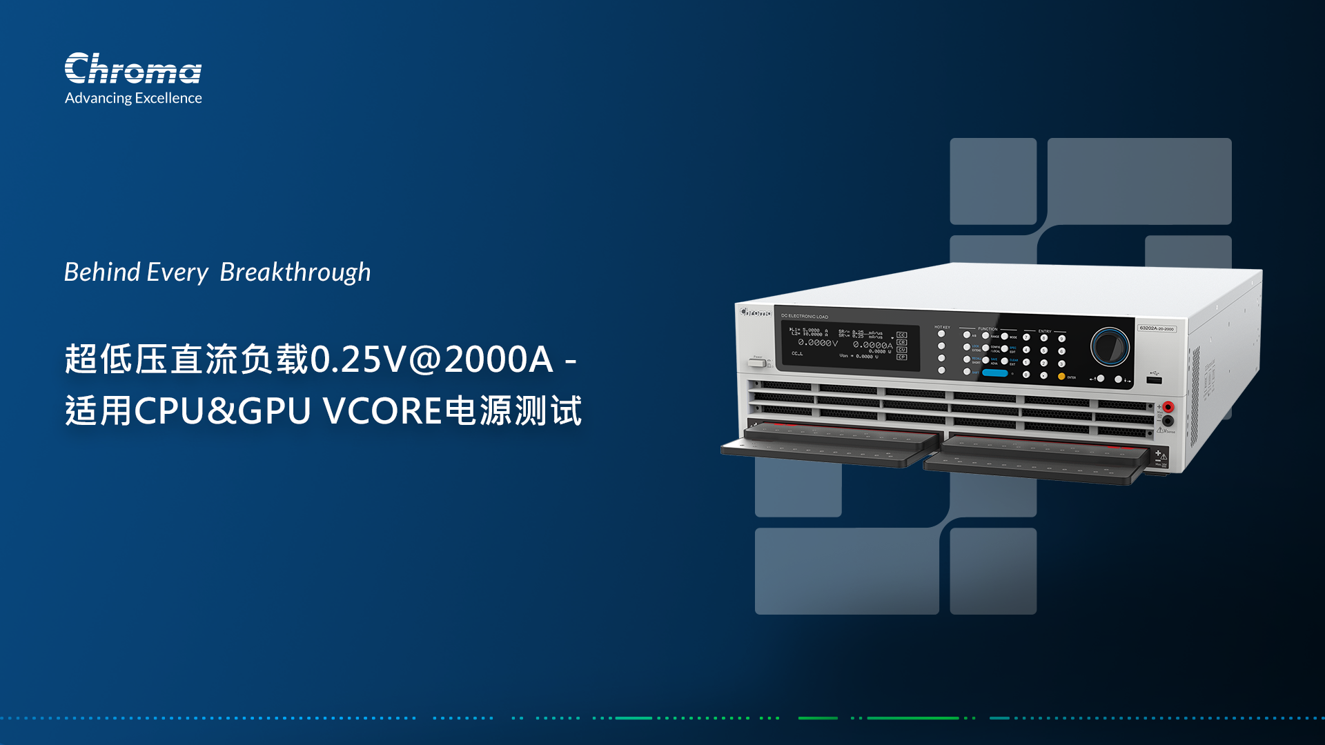Chroma推出超低壓直流電子負載,針對CPU和GPU的電源測試而設(shè)計。可操作的電壓范圍為0-20V,額定功率為2kW,電流規(guī)格提供1,000A和2,000A兩種。因為CPU及GPU電源的輸出電壓很低,為改善無法順利拉載的問題,Chroma 63202A-20-2000電子負載獨特的設(shè)計,可以在電壓低至0.25V的條件下,實現(xiàn)2,000A的拉載能力,且即便在低于工作電壓0.25V至0V區(qū)間,仍能持續(xù)拉載,確保電子負載可以仿真真實的工作條件,此一能力對測試和驗證GPU電源尤為重要。