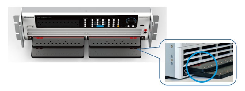 此外,Chroma 63202A-20-2000超低壓直流電子負載特殊的前銅排端子設(shè)計,除了方便使用者接線外,左右兩邊銅排相通,并在正負銅排之間增加絕緣飾板以避免短路,還提供多孔鎖附點。此設(shè)計提供了低感量連接,對提升負載動態(tài)載響應(yīng)速度有著顯著幫助,使電子負載在0.5V時電流斜率可以達到60A/us。另外Chroma提供選購的負載連接線,特殊設(shè)計有超低的自感量,有效改善動態(tài)電流測試產(chǎn)生的電壓降或電流過沖的問題。