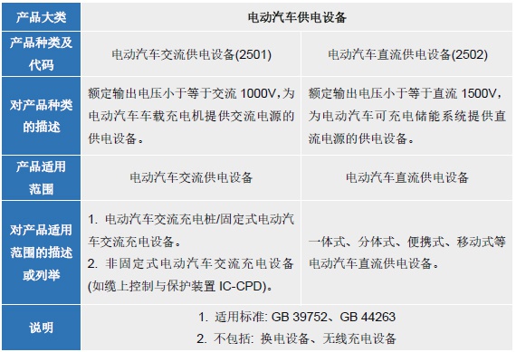 進一步了解,依據市場監管總局2024年第50號公告,為加強產品質量安全監管工作,對電動汽車供電設備實施強制性產品認證(CCC認證)。2025年3月1日起,指定認證機構開始受理電動汽車供電設備的CCC認證委托。受影響的產品其描述與界定如下表: