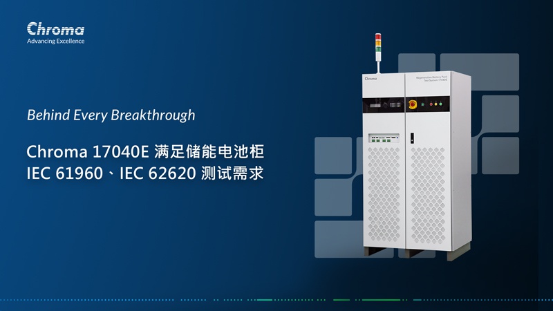 IEC 62620針對鋰二次電池的性能進行了規范,涵蓋了容量、能量密度、循環壽命、充放電特性等多個方面。而IEC 61960則著重于工業用鋰離子電池的安全性,涵蓋了過充、過放、短路等極端條件下的測試。充放電測試設備在儲能系統中扮演著關鍵角色,Chroma 17040E操作電壓最高1700V,可用于電池柜的測試,結合IEC 61960、IEC 62620等標準的測試要求,能有效地評估電池的性能和安全性,進而打造高質量的儲能系統。