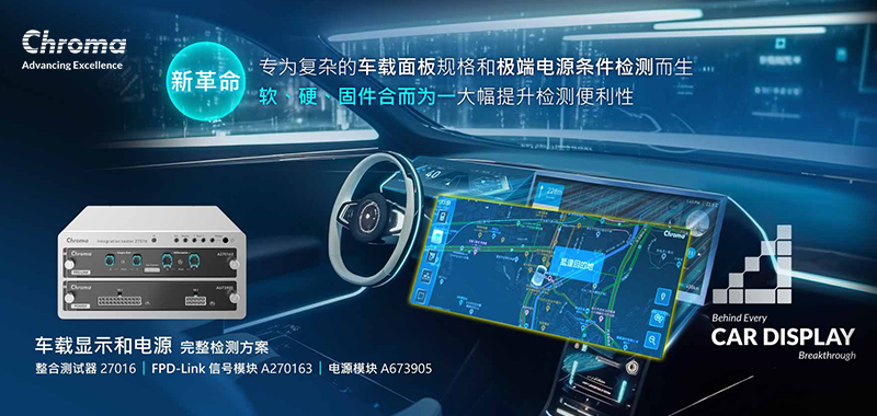 隨著車載顯示市場(chǎng)的不斷擴(kuò)大,現(xiàn)今智能化的車載顯示設(shè)備由信息儀表板、影音娛樂(lè)系統(tǒng)、中控臺(tái)、后照鏡、抬頭顯示器皆使用車載顯示器,未來(lái)「一車多顯示器」的趨勢(shì)日益明顯,依據(jù)不同車廠、制造商、使用場(chǎng)景皆有各式各樣的顯示器信號(hào),傳統(tǒng)及未來(lái)車載顯示器測(cè)試必須符合各車廠及車規(guī)的要求,Chroma推出全新機(jī)種27016 整合測(cè)試器,一機(jī)可搭載FPD-Link?、GMSL?、APIX?信號(hào)和可程序化電源將軟、硬、固件合而為一,并且可使用多種信號(hào)源進(jìn)行檢測(cè),模擬車輛在極端的電源條件,尋找出產(chǎn)品的不確定性,大幅提升產(chǎn)品質(zhì)量。
