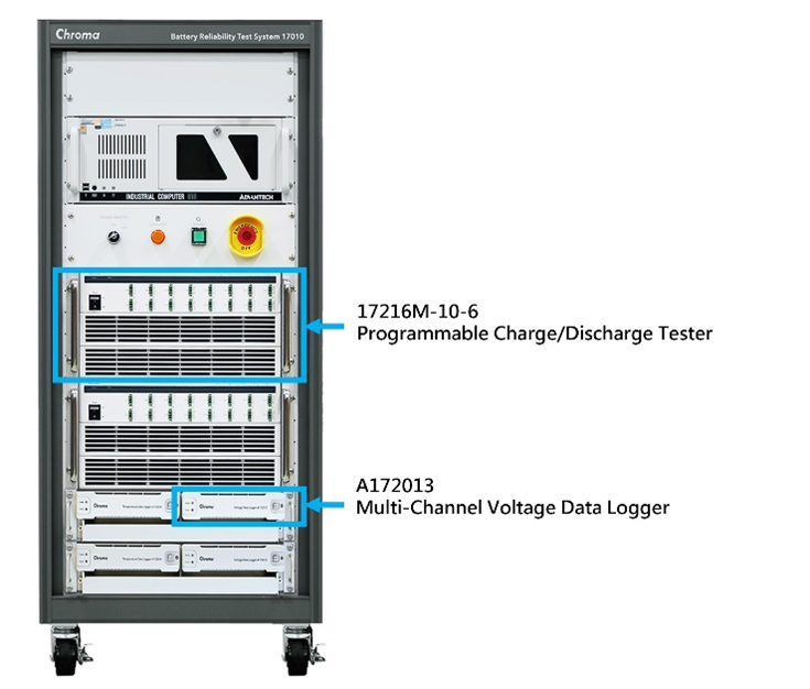 Chroma 開發(fā)A172013電壓型數(shù)據(jù)紀(jì)錄器(如下圖三),可為鋰析出的研究需求提供良好的測試解決方案。A172013內(nèi)部采用24bit的ADC,搭配內(nèi)建6個電壓文件位,最高可解析出μV級別的電壓變化,有效地辯證負(fù)電極的鋰析出發(fā)生邊界,并具備高達(dá)±0.015% of F.S.量測精度,保障長時間測試精準(zhǔn),同時一臺單機(jī)集成了16個獨(dú)立量測信道,可同步進(jìn)行數(shù)據(jù)擷取不延遲。搭配Chroma 17216M-10-6充放電測試系統(tǒng),該機(jī)種內(nèi)建6A/200mA/6mA/200μA 4個電流量測檔位,特別適用于實(shí)驗(yàn)室型的鈕扣型、小型軟包、18650圓柱型等三電極電池。透過 Chroma 整合式測試平臺,研究人員可精準(zhǔn)辨識析鋰風(fēng)險(xiǎn)與衰退機(jī)制,進(jìn)而優(yōu)化的電池配方與設(shè)計(jì)。