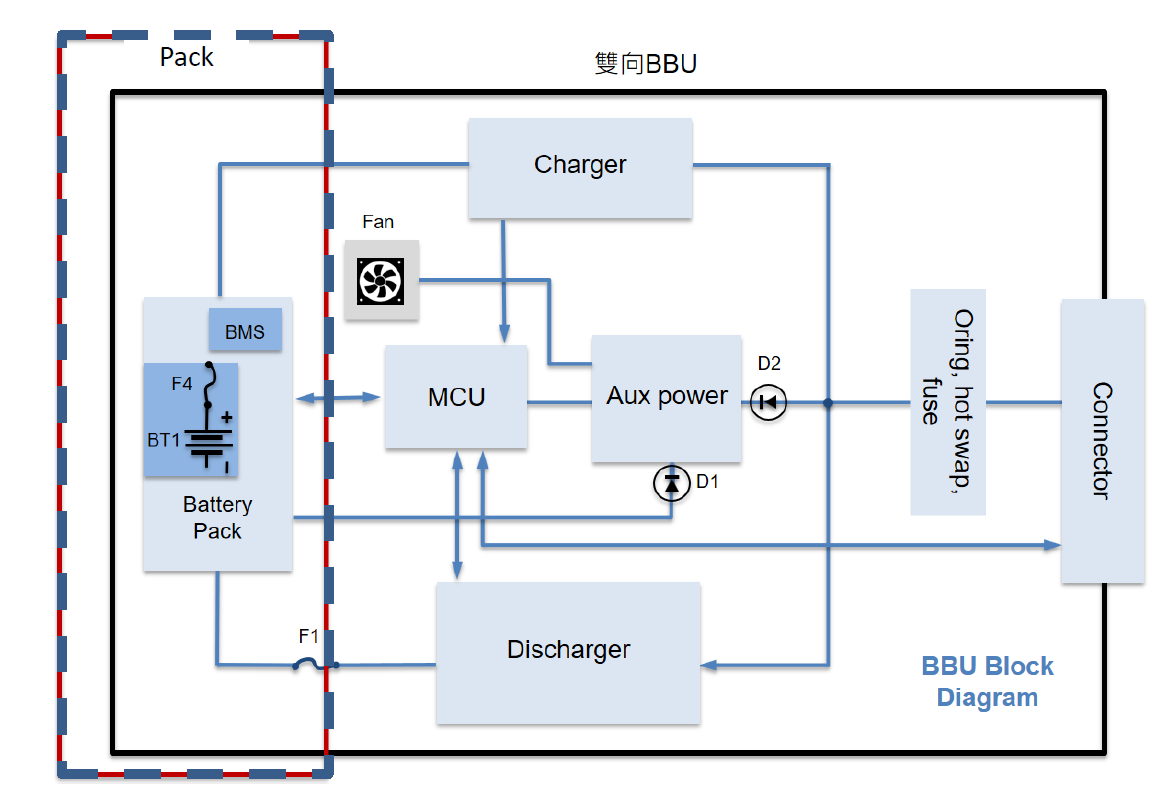 BBU由鋰電池模塊(Core Pack)與高效率DC-DC轉換器組成,鋰電池模塊承擔核心電力存放任務,并透過BMS(電池管理系統)實時監控電池狀態,且需符合UL 9540國際安全標準,為整體供電安全把關;然而在電力供應斷電時,BBU透過DC-DC轉換器可實時偵測系統直流母線(DC Bus)電壓狀態,并迅速切換至BBU模塊供電,以提供服務器電力可將存儲在動態隨機存取內存(DRAM)中的快取數據,快速寫入到備援的固態硬盤(SSD)避免關鍵數據遺失,以實現零風險備援。
