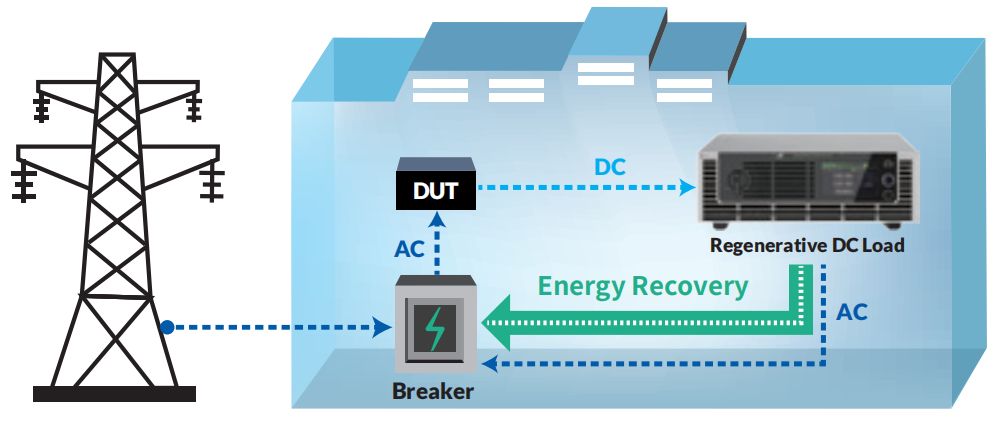 針對長時間燒機測試,可配置Chroma 63700能源回收式直流電子負載,將測試過程中消耗的能源回饋至廠內電網再利用,回饋效率最高達93%,有效降低能源的浪費并節省電力成本。