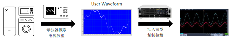 簡稱UDW功能,用戶可透過示波器擷取真實負載(如家電設備)的拉載電流波型,或以Excel編輯自定義波型,藉由Chroma設備專用軟件SoftPanel,將該波型以單一周期型式儲存,并匯入至Chroma 61815來復現出定義的拉載電流。如此可解決V2L拉載測試的標準化及重復性等問題,且透過多達200組的UDW模型建置,可直接取代大量的真實負載需求,提供用戶更佳的配置便利性、更少空間成本,以及更快速便利的測試流程。