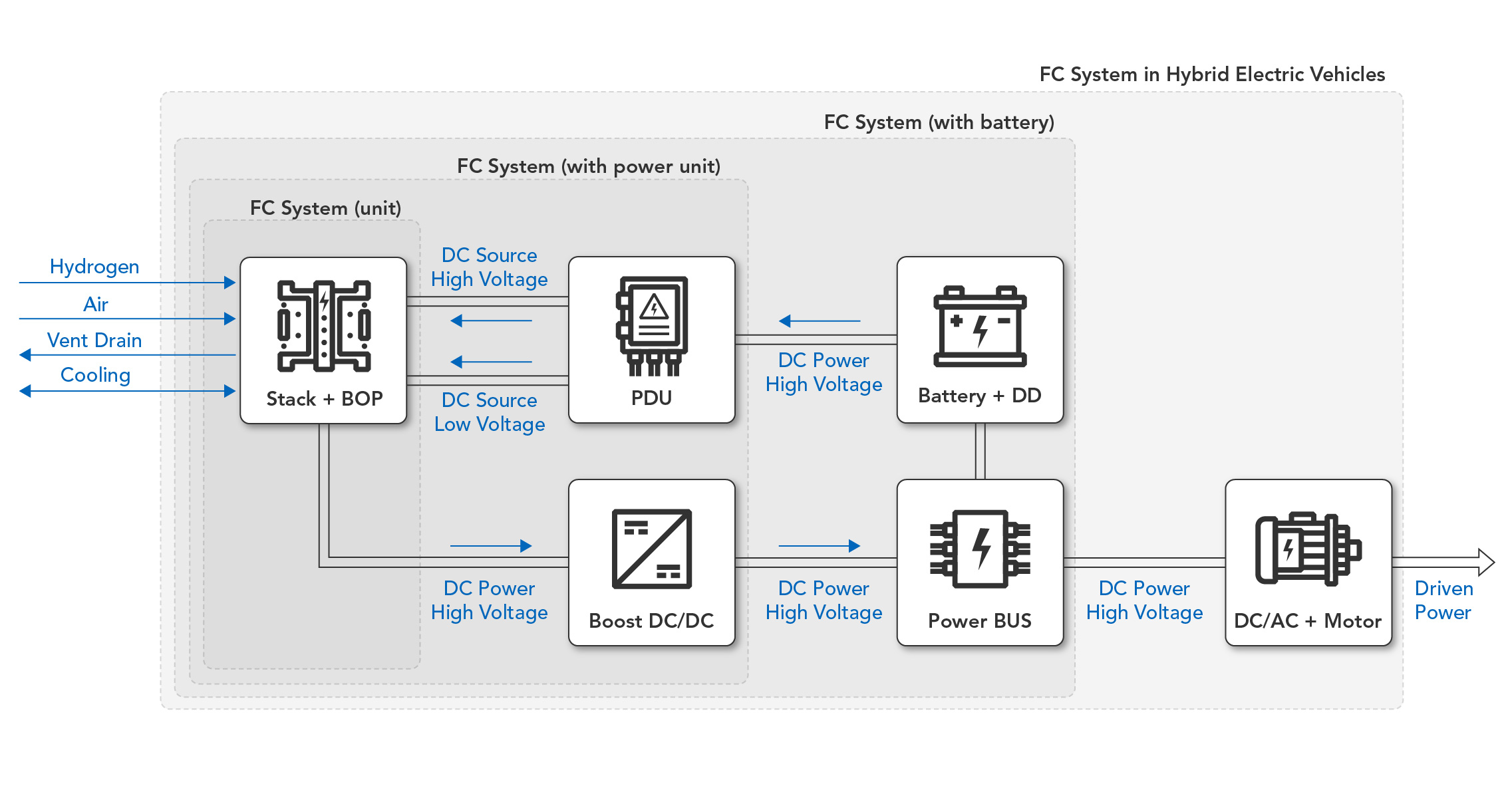 - FC System(with Power Unit) 燃料電池發動機(含PDU與DC/DC Booster)