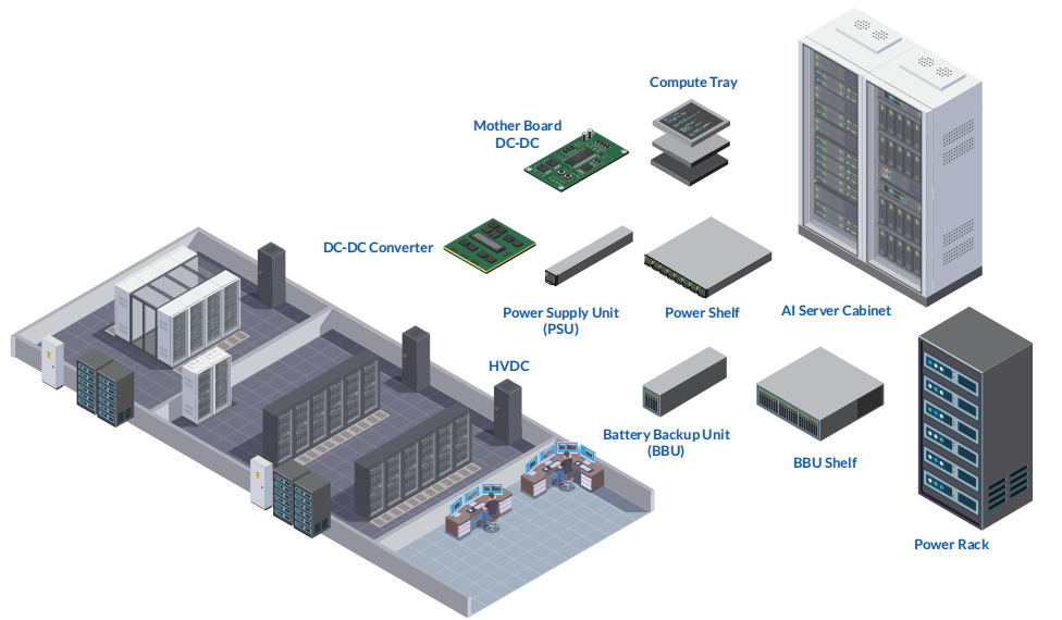 云端運算、人工智能(AI) 與高效能運算 (HPC)的快速發展,資料中心對高效能、高可靠度的服務器電源與電池備援模組(Battery Backup Unit,BBU需求增加。為滿足此趨勢,業界致力于提升電源轉換效率與供電穩定性,并確保BBU在電力中斷時能即時提供備援電力,維持系統正常運行。