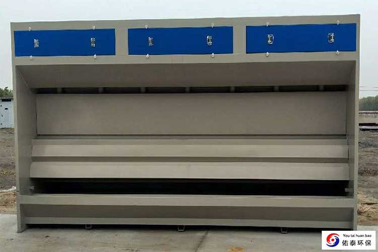 1、水旋柜漆渣從后面打撈,無(wú)泵水幕噴漆臺(tái)漆渣從后面打撈。