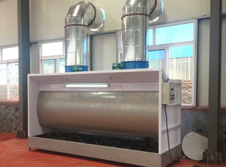 3.2、二是漆霧捕捉系統(tǒng):采用外水幕厚度0.6mm的201不銹鋼,兩個水槽,兩層內(nèi)擋板組成的2級水簾漆霧捕捉系統(tǒng),捕捉漆霧中的顆粒狀涂料成分。水幕形成的水膜能吸附空氣中顆粒狀固體雜質(zhì),2級水幕對進入內(nèi)風道的空氣進行除塵。內(nèi)風道內(nèi),由于氣流轉向形成渦流,