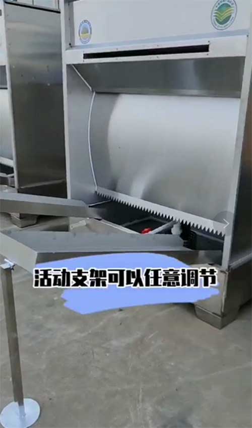 2、使用干式除塵時,砂輪機距離局部扇風機遠近不同,距離遠的砂輪機除塵效果不理想,且風道容易堵塞.局部扇風機噪聲大,電耗多。新款水式除塵柜帶有可調節支架,打磨產生的粉塵一部分隨支架上水槽流入水池,另一部分直接通過水簾吸附凈化。