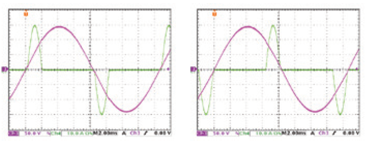 如圖1所示,當輸入電壓為正弦波且CF=1.414時,則PF僅能等于1。然而當CF=2時,則PF可接受的范圍為0.608~0.85 ; CF=3時,PF可設定的范圍為0.211~0.6。因此,較高的CF會有較大的PF設定范圍。