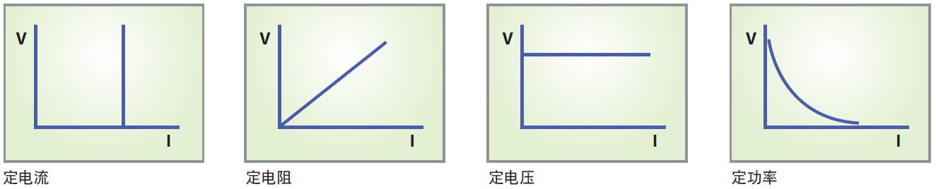 63800 直流負載仿真包括四種負載模式 : 定電流、定電阻、定電壓及定功率模式,如下所述。
