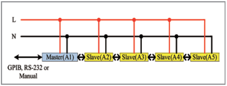 63800系列提供多臺并聯、三相與并聯三相的功能,讓用戶能夠進行更大功率或三相交流電源的測試應用。其中,63800系列的各個不同型號的負載也可互相做并聯或三相的搭配,這樣可以更靈活、更彈性的使用63800系列交流電子負載,以節省成本。