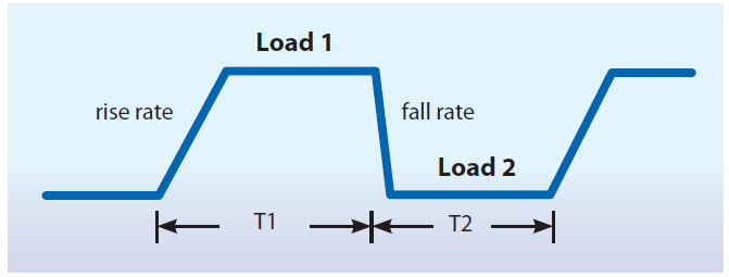 6310A提供高速的可編程動(dòng)態(tài)負(fù)載特性仿真功能,下圖可說明6310A的可編程參數(shù):
