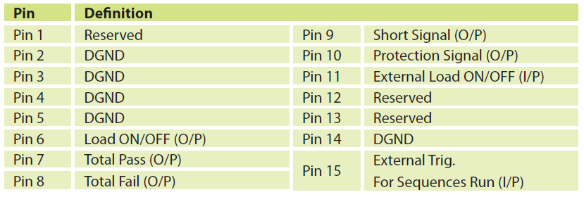 數(shù)字I/O控制接口在自動(dòng)測(cè)試系統(tǒng)的應(yīng)用環(huán)境中,可藉由I/O信號(hào)進(jìn)行簡(jiǎn)易操作與判定。例如:透過I/O信號(hào)可啟動(dòng)負(fù)載、啟動(dòng)OCP測(cè)試、啟動(dòng)時(shí)序測(cè)試、取得負(fù)載狀態(tài)信號(hào)等。